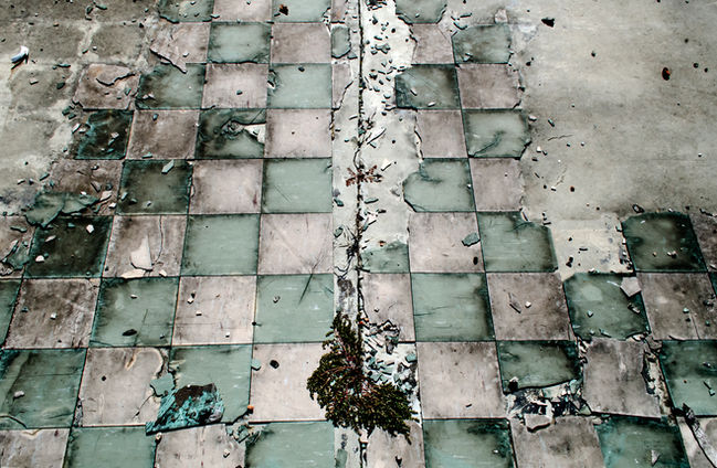 This series of photographs was captured where buildings once stood that burned or razed. The only remains are the foundations.